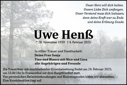 Lesen Sie hier die Anzeigen und Trauerpost!
